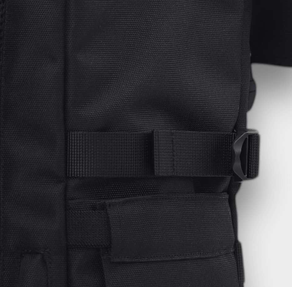MINATO PREMIUM BLACK KNIGHT JE VYROBEN Z ECO CORDURA® RE/COR™ 1200D. MATERIÁL NABÍZÍ ŠPIČKOVOU ODOLNOST A PEVNOST, PŘIČEMŽ ZÁROVEŇ SNIŽUJE EKOLOGICKOU STOPU.